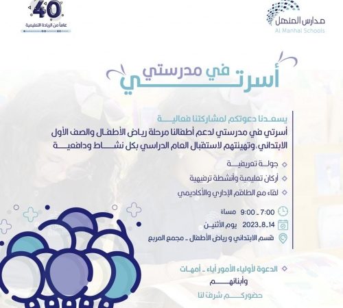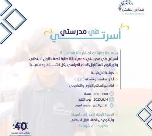 يسعدنا دعوتكم لمشاركتنا فعالية ( أسرتي في مدرستي )